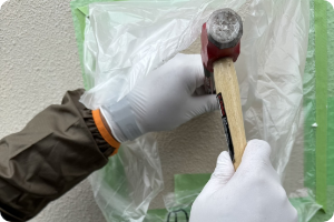 検体採取後、採取痕(穴が開いた箇所)には、速やかに飛散防止剤の噴霧や接着剤を塗布し、繊維の飛散を防止します。