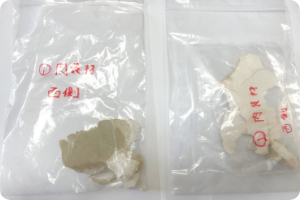 表面が同じでも下地が異なる、色や質感が違う場合は、それぞれ別の検体として採取してください。異なる材質を混ぜると正確な分析ができません。